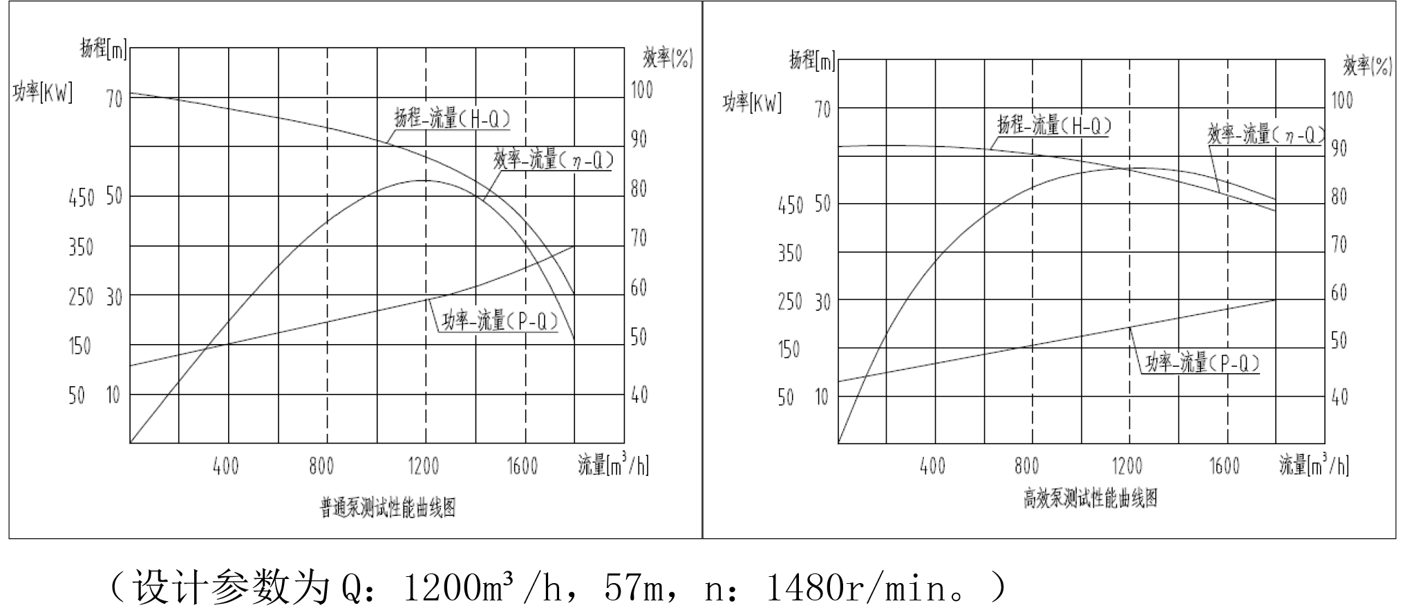 ·在小流量点,高效泵比普通泵效率提高10%;在大流量点时,高效泵比普通泵效率提高12%。