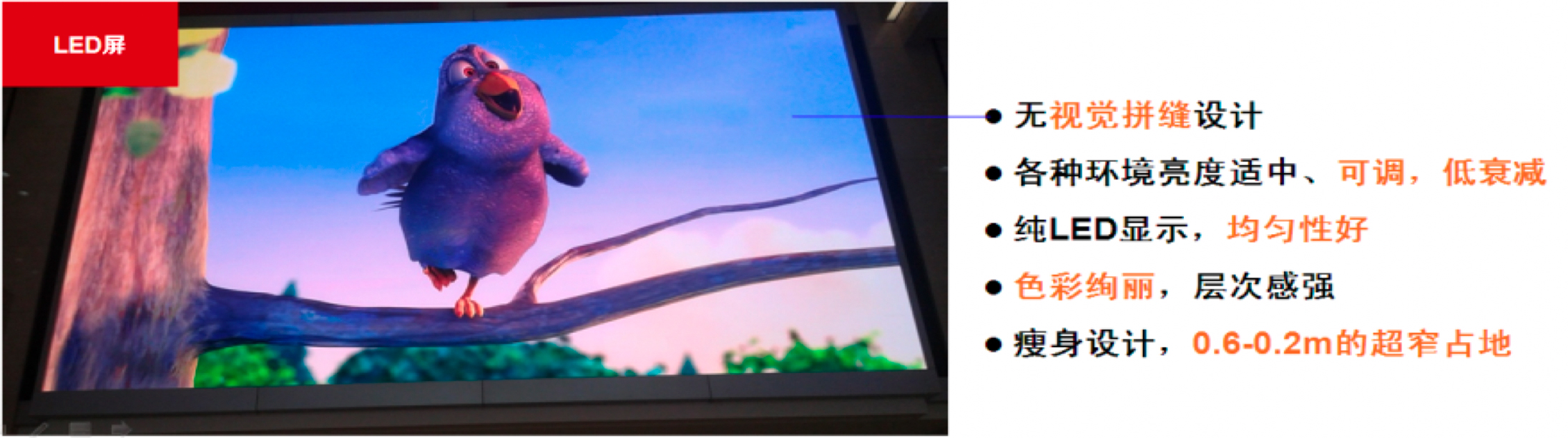 随着LED大屏幕点间距不断缩小、分辨率的不断提高,在一些使用要求较高的领域,已经完全可替代传统大屏幕显示墙,同时LED大屏幕图像完整没有拼缝(严格说是肉眼几乎看不见拼缝),尺寸大小不受限制,各部分亮度高度一致性,图像层次丰富,色彩均匀,无论分屏显示还是组合成一块大屏显示都极尽完美,显示效果明显高于传统显示方式。
